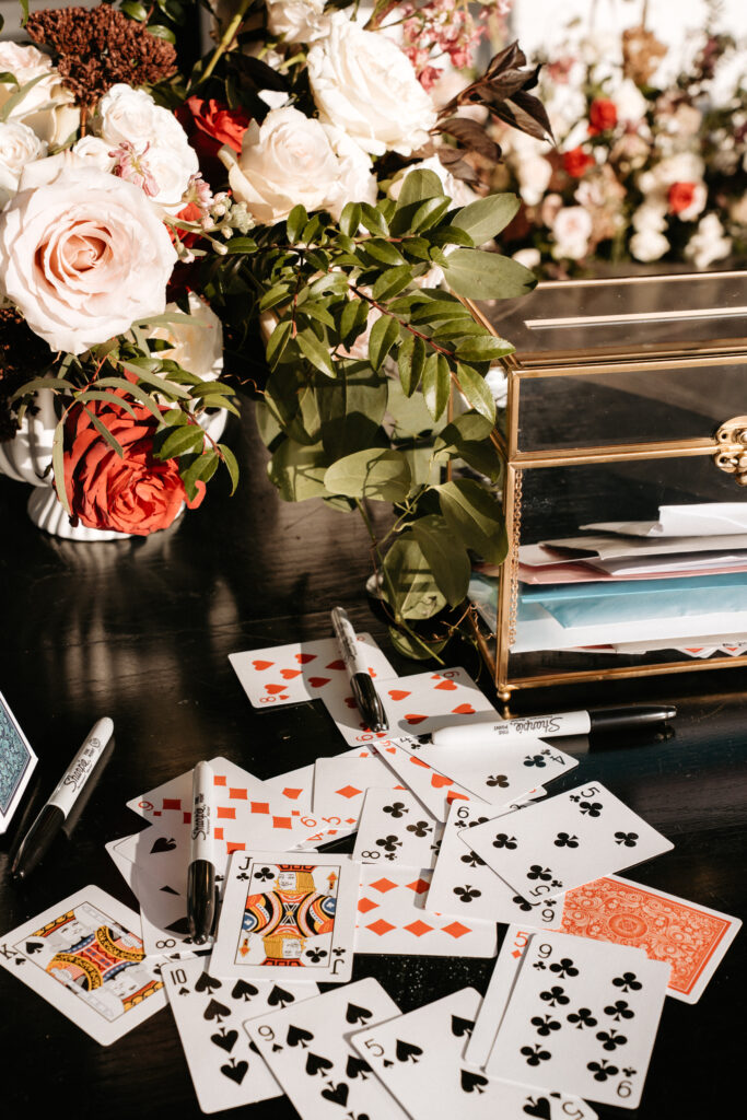 Beyond the drinks, the details were thoughtful at every turn. Guests signed a deck of cards as a guest book. It was personal, playful, and something Tori and Connor actually framed after the wedding, displaying it on their wall at home. And the Pittsburgh cookie table – it’s a tradition, and a serious one. Tori and Connor are both Pennsylvania kids, and they weren’t about to get married without one – it brought in a touch of their home state.