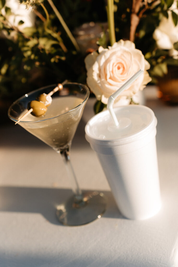 Connor honored his dad again during cocktail hour through one of two signature drinks – “The Jeff,” a dirty vodka martini with blue cheese olives, named for him. The second cocktail, “The Jack,”, named after Tori’s father, was a vodka transfusion with grape juice and ginger ale – and here’s the best part – served in a styrofoam cup, just like on the golf course.